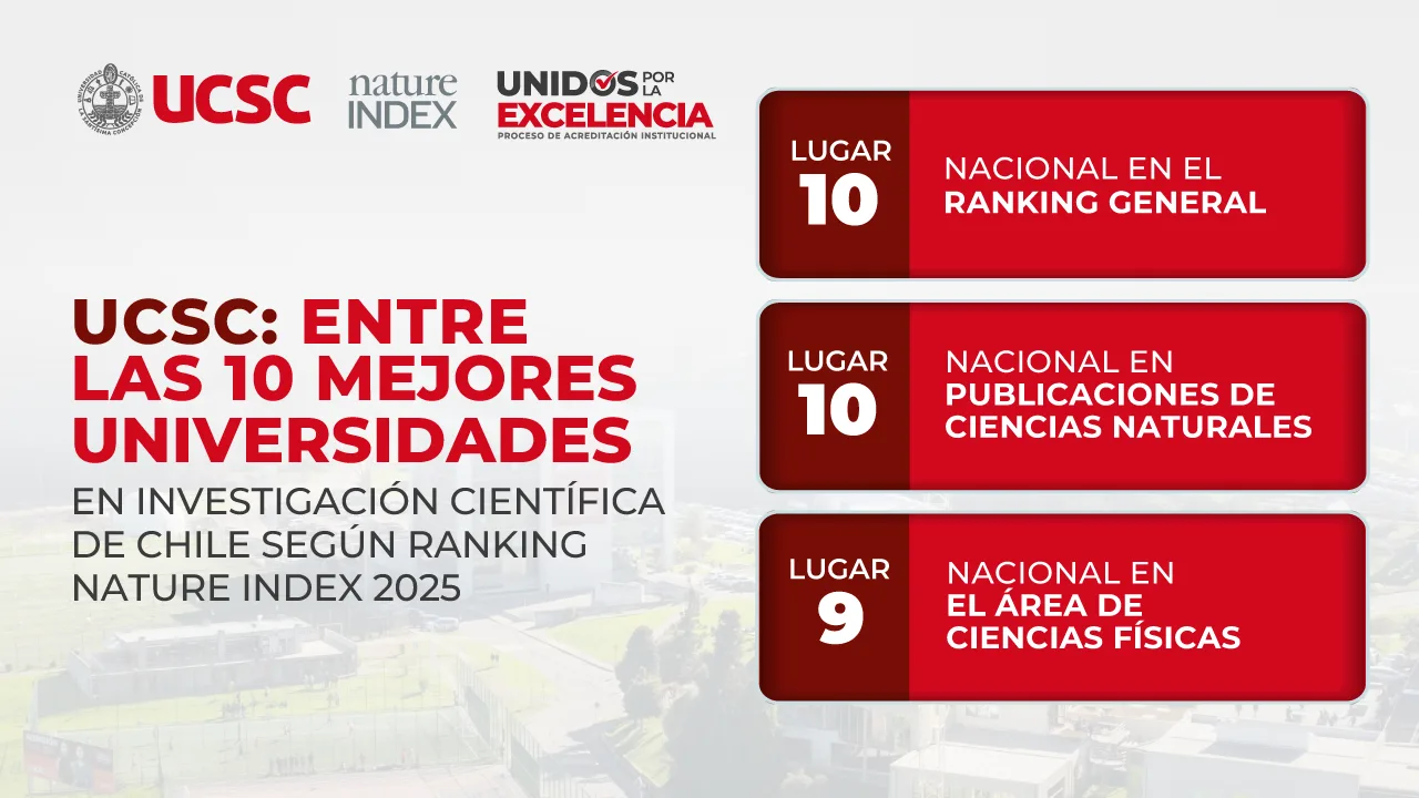 La Universidad Católica de la Santísima Concepción alcanza, por primera vez, el Top 10 nacional en productividad científica de alto impacto según Ranking Nature, destacándose en el ranking general, en Ciencias Físicas y en publicaciones de Ciencias Naturales.