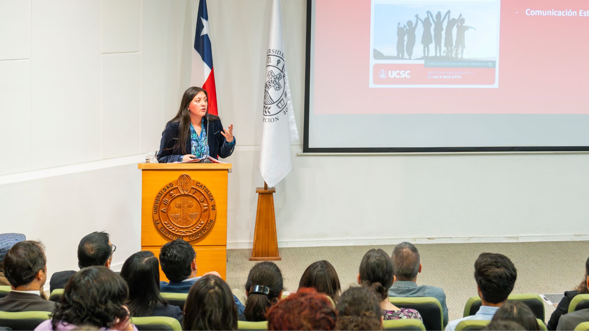 Clima laboral, identidad católica, docencia en pre y postgrado, infraestructura, investigación y vinculación con el medio fueron algunas de las áreas revisadas por la Decana de la Facultad de Comunicación, Historia y Ciencias Sociales, Nadia Castro, en la Cuenta Anual del período 2024 en la que participó el Rector de esta Casa de Estudios, Dr. Cristhian Mellado, junto a autoridades superiores, decanos, estudiantes, académicos y personal administrativo.