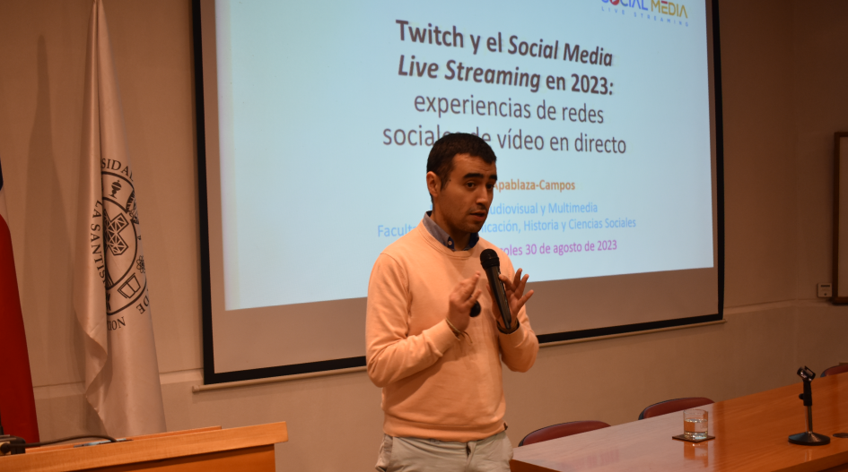 La charla titulada “Twitch y el Social Media Live Streaming en 2023: experiencias en redes sociales de video en directo” surge de una invitación realizada por el académico y Vicedecano de la Facultad de Comunicación, Historia y Ciencias Sociales, Dr. Manuel Rivera, a Alexis Apablaza, con quien trabaja distintas líneas de investigación.